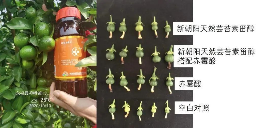 除了溫度、光照會(huì)影響果實(shí)糖分積累以外,營養(yǎng)的補(bǔ)充和調(diào)節(jié)劑的使用也決定著果實(shí)糖度和著色程度。尤其針對(duì)四川晚熟雜柑到后期氣溫慢慢的降低,普通蕓苔素吸收率利用率會(huì)大打折扣,而天然蕓苔素能提高作物的光合作用效率,在低溫下吸收利用率高,能夠低溫條件下促進(jìn)養(yǎng)分、色素和糖分的合成與積累。